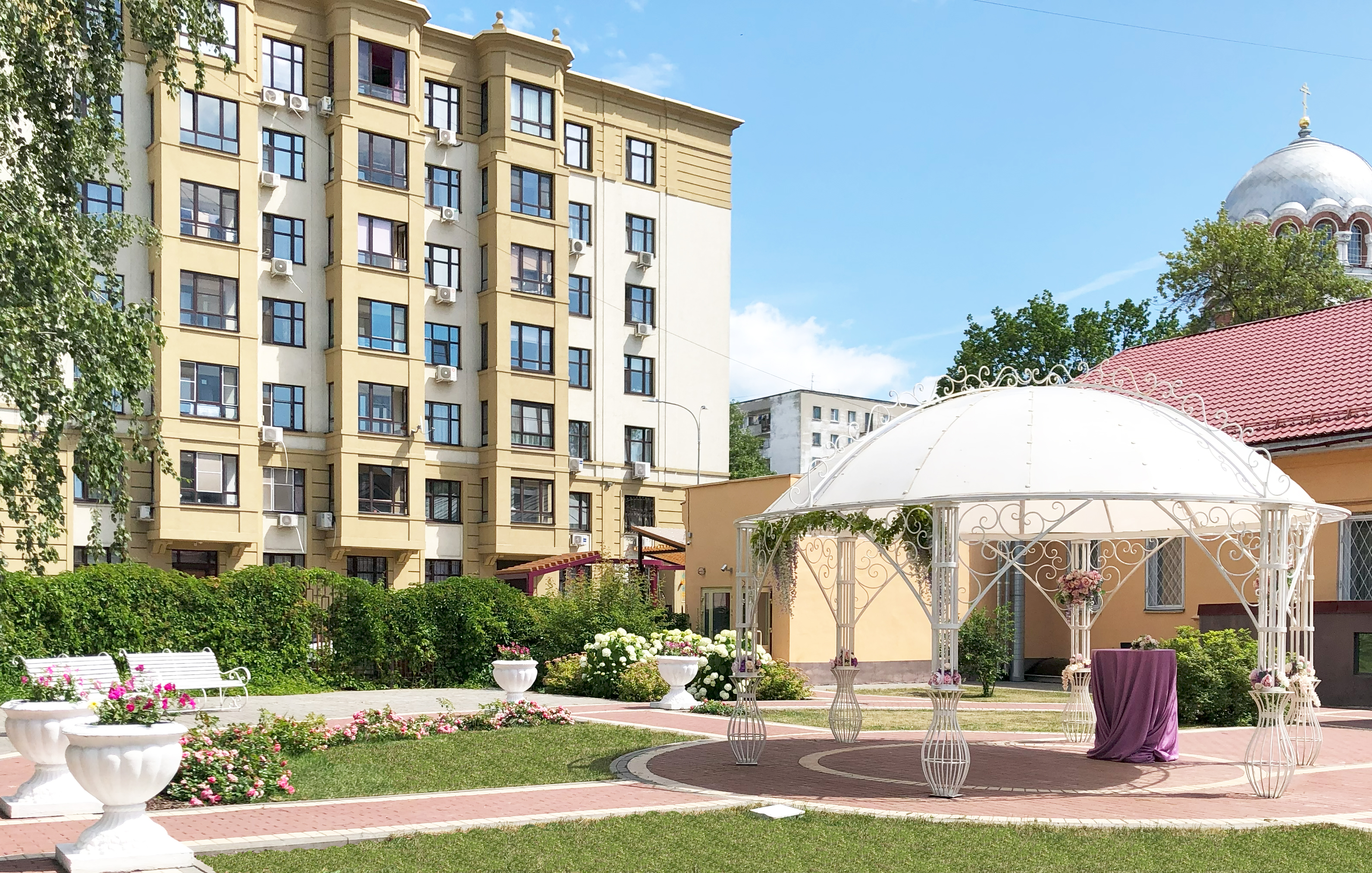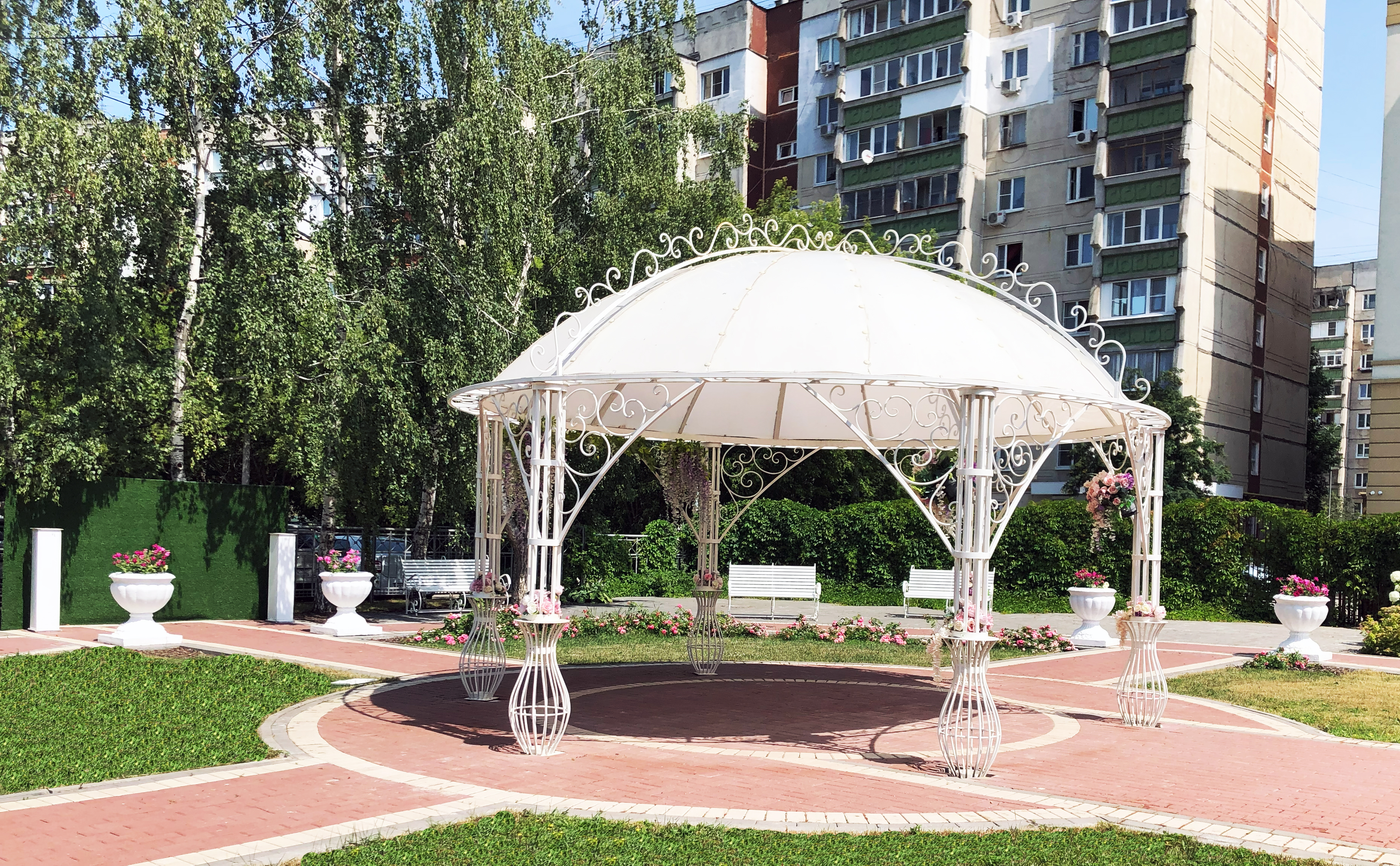 Живописное место с современным ландшафтным дизайном - сквер Заречного Дома бракосочетания. Торжественная церемония под открытым небом - что может быть красивее?!